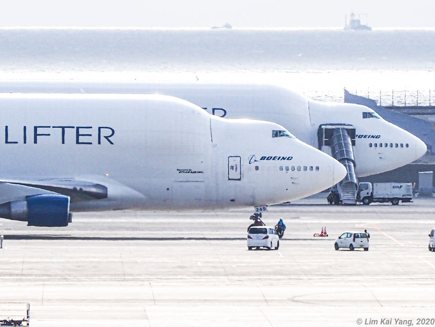 Pictured here are N249BA and N747BC, taken at Nagoya Chubu Centrair Airport (NGO/RJGG) dropping by for some 787 parts. It is such an honour to catch two of these elusive ladies in a single day!